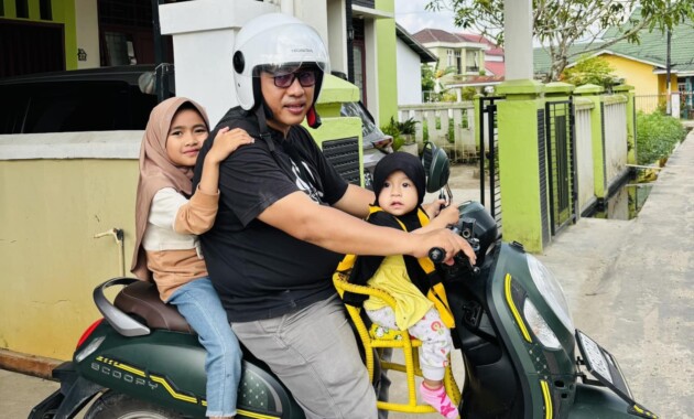 Dalam perjalanan hari ini, kusaksikan suamiku mengendarai motor dengan kedua putri kecil kami. Si kakak duduk manis di belakang, sementara si bungsu tersenyum riang di depan, memeluk angin dengan rasa penasaran yang khas anak-anak.